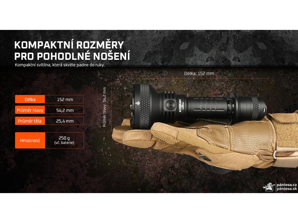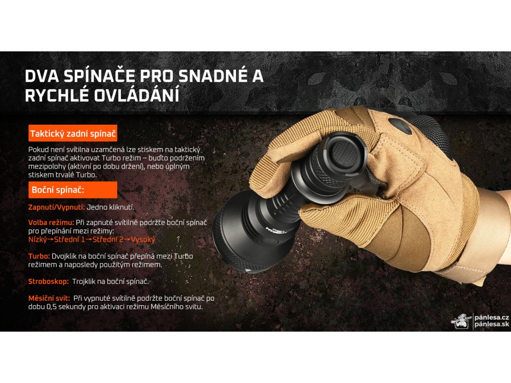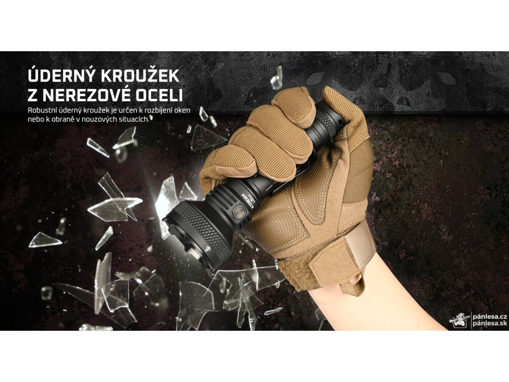 Oceniť možno aj úderný krúžok z nehrdzavejúcej ocele, ktorý si poradí s každým sklom. Výhodou je tiež kompatibilita s rôznym príslušenstvom, ktoré umožňuje uchytenie baterky na dlhú zbraň a prepnutie do turbo režimu pomocou diaľkového spínača.