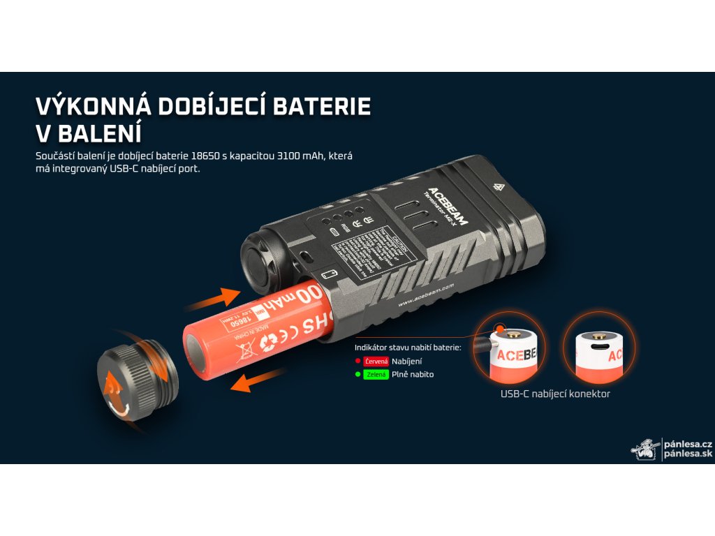 1x Akumulátor AceBeam 18650 3300 mAh s USB-C nabíjacím portom