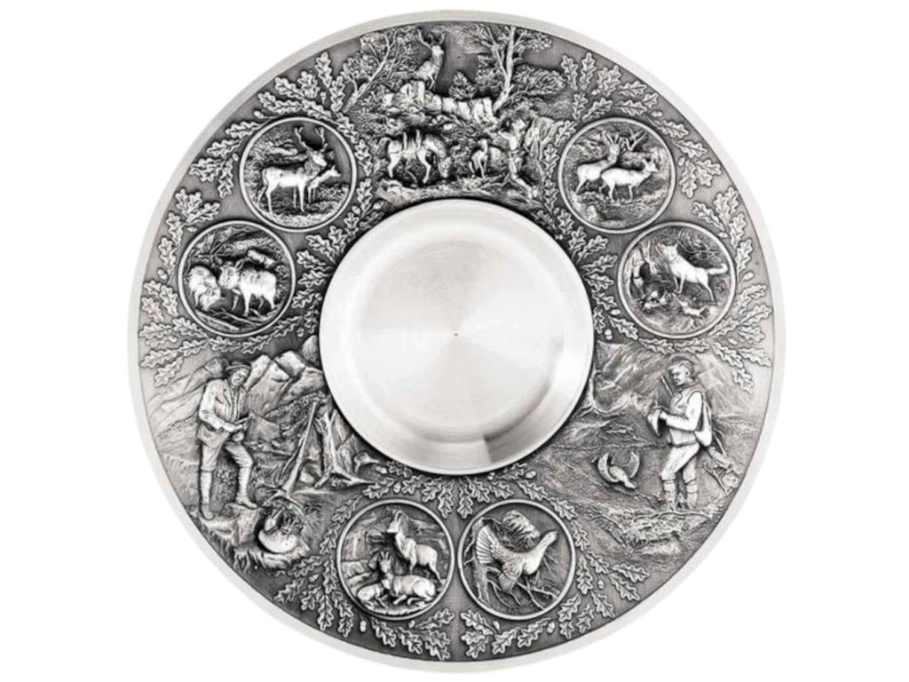 Dekoratívny nástenný tanier s poľovníckym motívom od rakúskeho výrobcu Artina. S priemerom 24 cm a hmotnosťou cez pol kila tvoreného z 95% cínom, ide o skvelý dekoratívny predmet väčších rozmerov.