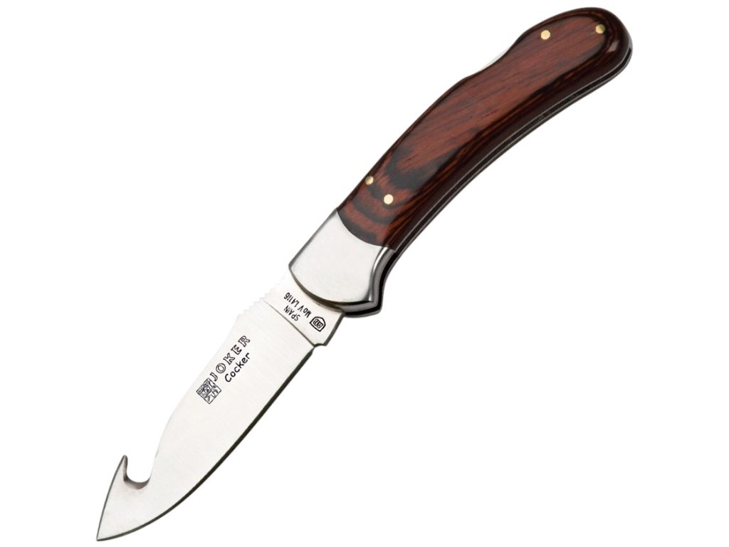 Španielsky výrobca Joker je tradičný výrobca z tradičnej liahne nožov – mesta Albacete. Nôž Cocker je zo série zatváracích nožov, ktoré sú skvelé na každodenné nosenie, predovšetkým vďaka veľmi nízkej hmotnosti a dostatočne dlhému ostriu. Nôž okrem klasického ostria disponuje párakom, ktorý vám uľahčí prácu pri vyvrhovaní zveri. Ďalej nôž ponúka poistku proti nechcenému zatvoreniu s vonkajším odistením a střenky z červeného dreva.